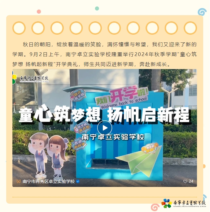 作者:南宁卓立实验学校 文章来源:南宁卓立实验学校 点击数:405 更新时间:2024/9/2 10:25:30
