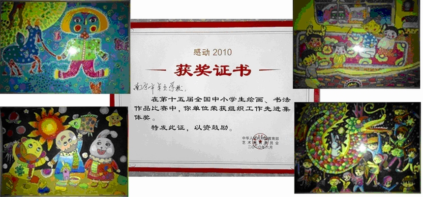 在第十五届全国中小学生绘画、书法作品比赛中取得了优异的成绩:共获得一等奖7名,二等奖21名,三等奖28名,优秀奖28名。我校也荣获第十五届全国中小学生绘画、书法作品比赛组织工作先进集体奖。