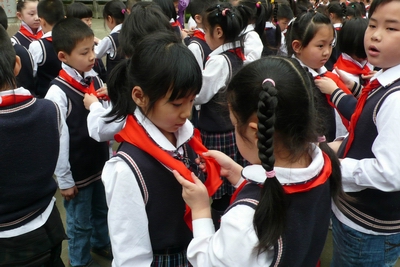 二年级的同学为一年级53名同学佩戴了红领巾,全体新入队的同学在庄严的队旗下,高高地举起右手大声宣誓:“准备着:为共产主义事业而奋斗!” ——“时刻准备着!” 同学们在活动中收获颇丰,纷纷表示今天的幸福生活来之不易,要继承革命先烈的光辉遗志,铭记历史使命,以革命先烈为榜样,好好学习将来报效祖国。