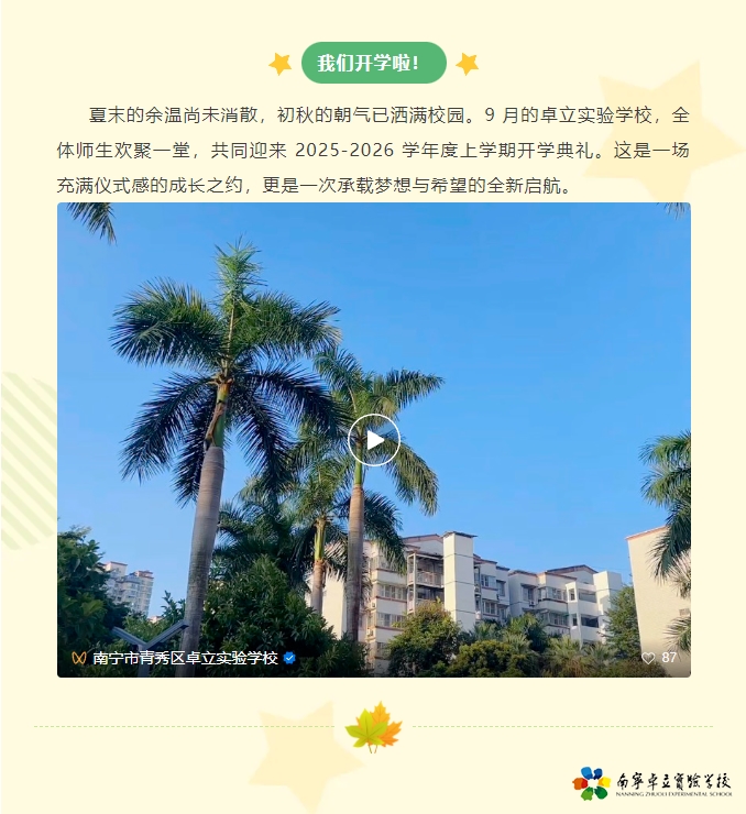 作者:南宁卓立实验学校 文章来源:南宁卓立实验学校 点击数:125 更新时间:2025/9/2 16:16:51